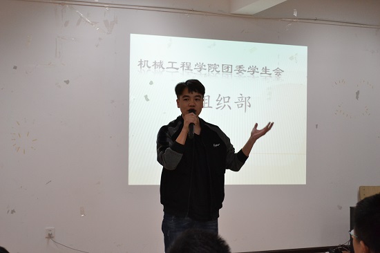 会议开始前,团委学生会执行主席团成员喻祖权对团委学生会的总体情况和工作职责进行介绍并对17级的学弟学妹们的到来表示感谢。