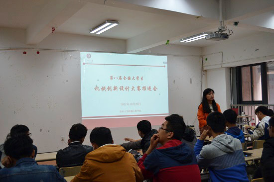 干老师首先向与会同学详细讲述了机创大赛的时间安排,她表示,今年11月份底我院将举行院赛进行方案评定,推选出优秀的队伍参加省赛,通过省赛后参加明年七月份举行的国赛。她还强调,院赛阶段主要考察各参赛队的参赛作品的设计背景、所运用的技术、立意是否切题和是否具有创新点等。