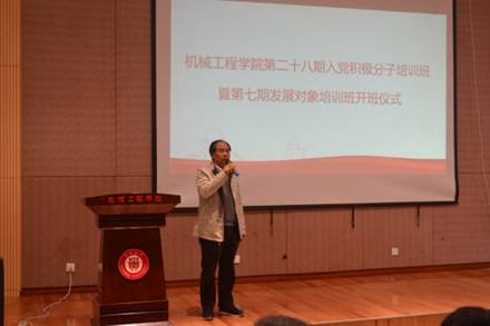 博中bz会员登录网站讯(图/文:赵师娟 王建/邹醒佳)4月12日,博中bz会员登录第二十八期入党积极分子培训班暨第七期发展对象培训班开班仪式在机械楼报告厅顺利举行。院党委书记安明刚、党政办副主任董平、本科生辅导员干雪梅、研究生辅导员田森等出席仪式,开班仪式由学生科负责人岑晓洁主持。