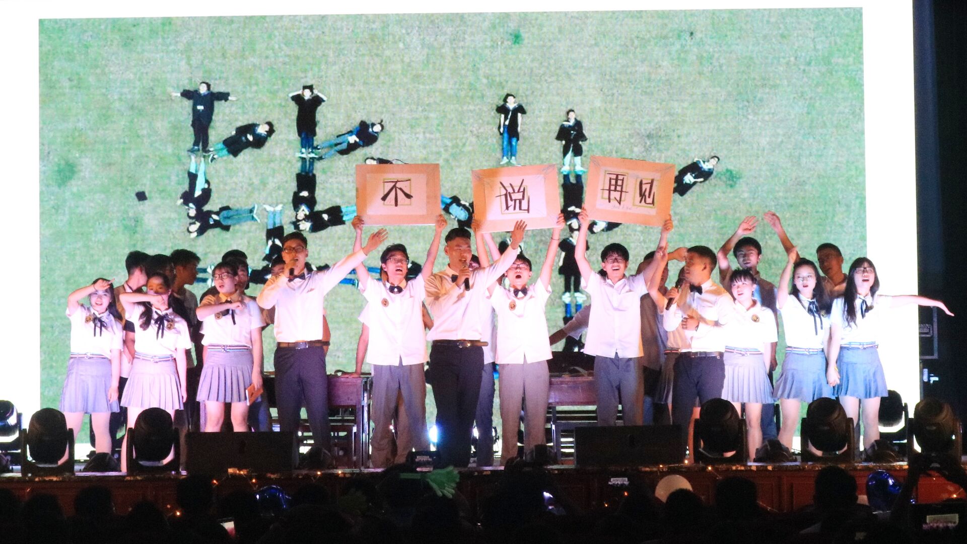 晚会分为三个篇章,内容精彩纷呈,节目形式多样,有歌曲、舞蹈、音乐剧等,由机械学院舞蹈队带来的古典舞《锦年》风姿绰约、美轮美奂;毕业生许路佳演唱民谣《南山南》,屏幕上闪过一张张回忆的照片带着大家细数过去四年发生的点点滴滴,感动温馨;小德云社带来相声《学哑语》,生动形象的表演引起阵阵欢笑;陈馨老师演唱英文歌曲《FIGHT SONG》节奏欢快、充满活力展现了不一样的教师风采;小品《机械四大才子》通过反差的人设幽默的语言为现场观众带来欢乐;黄放老师、尹键老师联袂献唱《花溪河有我的爱》悠扬婉转、深情动人;晚会在机械学院新闻社带来的音乐剧《不说再见》中落下帷幕。