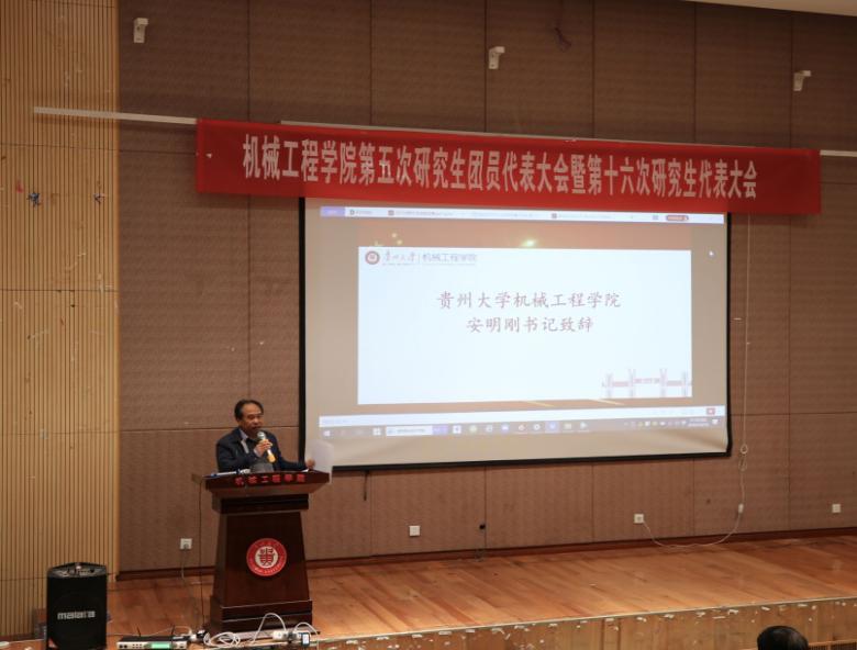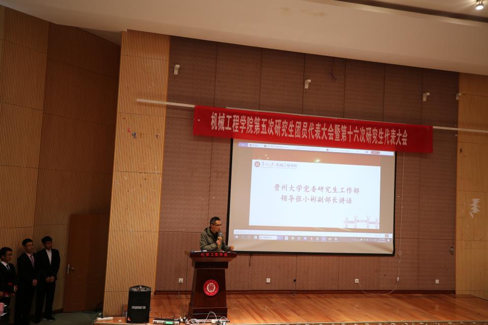 2020年10月16日,博中bz会员登录第五次研究生团员代表大会暨第十六次研究生代表大会在机械楼圆形报告厅隆重召开。贵州大学研究生工作部张小彬副部长、博中bz会员登录安明刚书记、赵津副院长、杨勤副院长、研究生科权红与郭蕊老师以及现代制造教育部重点实验室李鲜花老师出席本次大会,同时受邀参加本次大会的还有贵州大学各群团组织负责人。