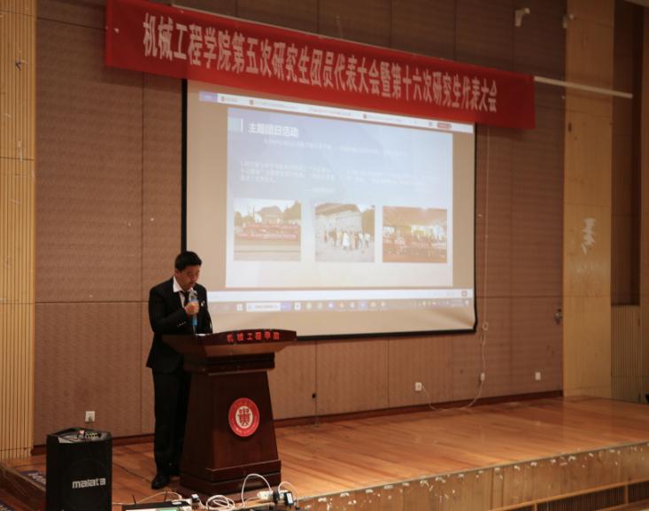 接着,团总支书记胡波、研究生会主席阮久文分别向大会进行年度工作汇报。报告回顾了过去一年在加强队伍建设、主题团日活动、机械品牌活动打造等方面取得的成绩与不足,提出团总支与研究生会应不忘初心,牢记使命,秉承“全心全意为研究生同学服务的宗旨”,积极助推研究生成长成才,勇于担当建设新时代的责任,在研究生生活中创造自己精彩的人生。