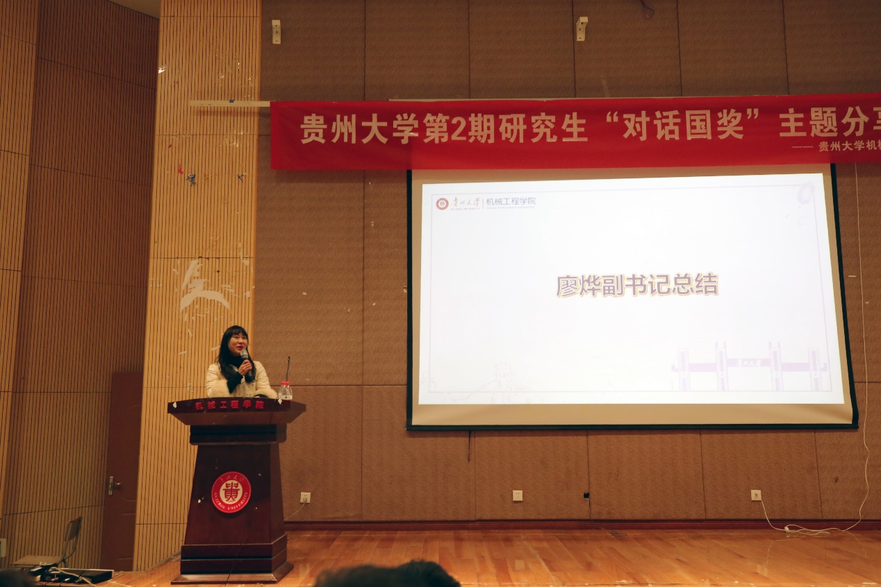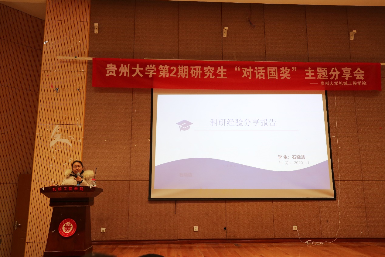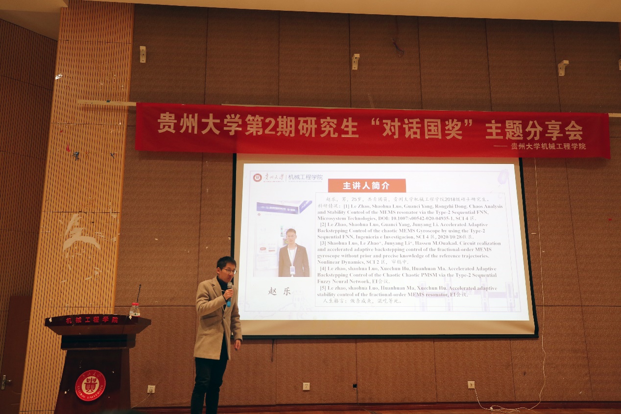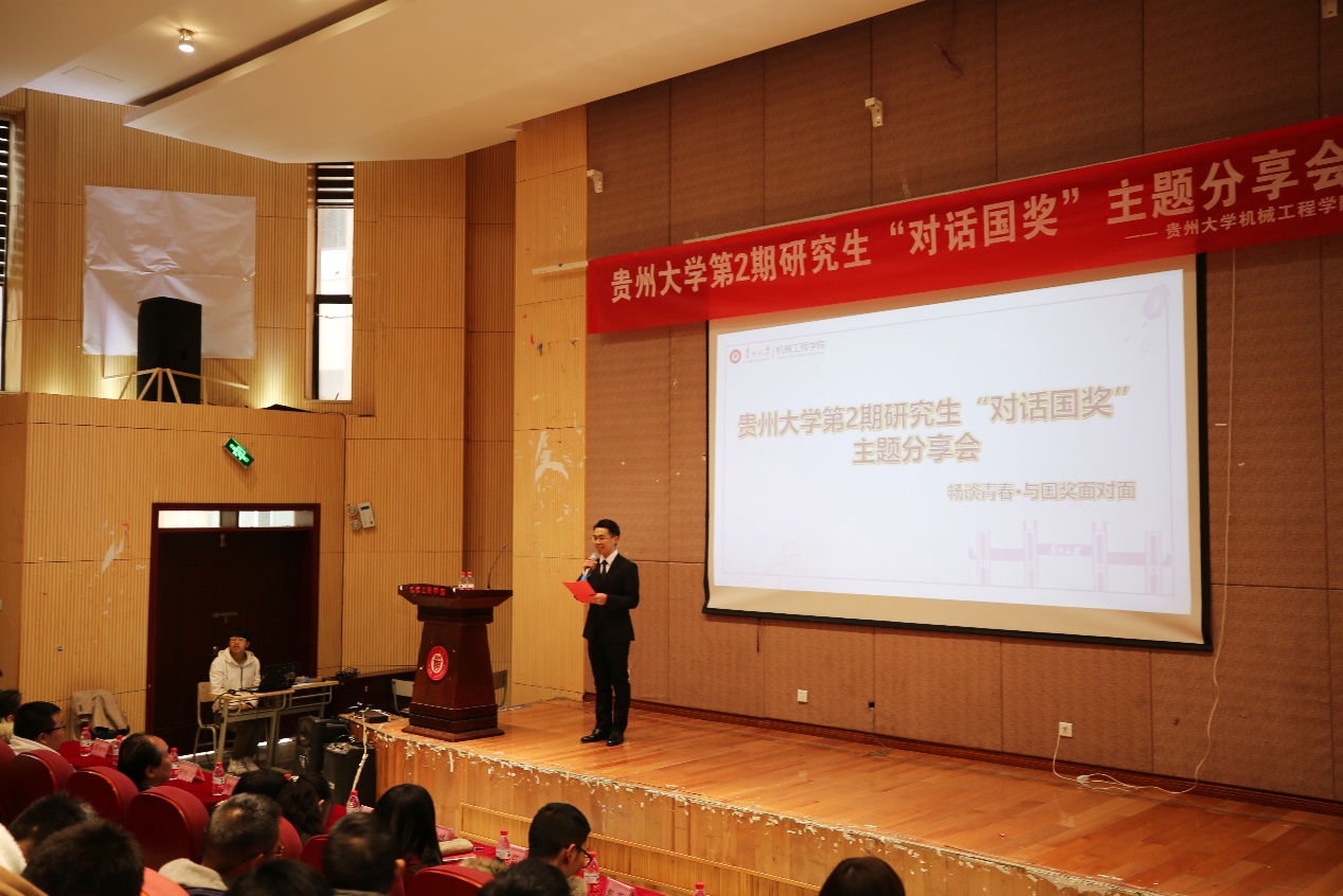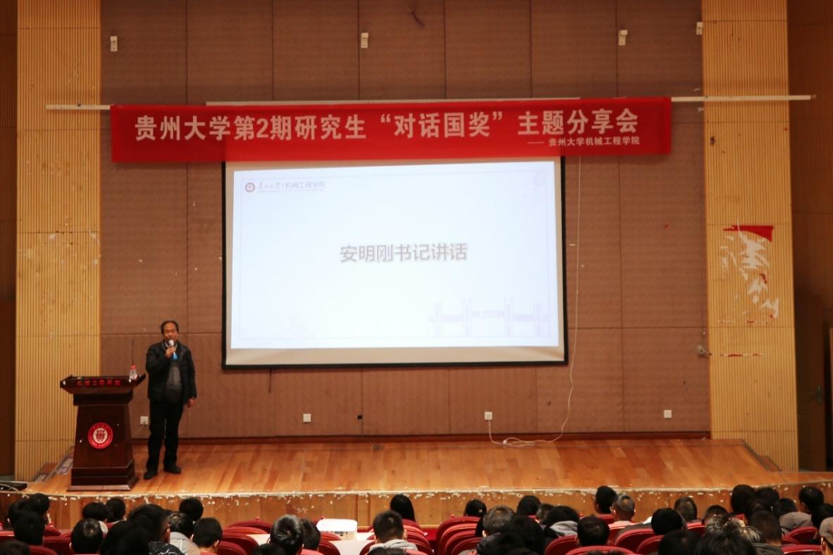 机械工程网站讯(记者 向檬|摄影 陈世婕)为进一步加强我院学风建设,充分发挥优秀研究生的引领示范作用。机械工程学院于2020年11月30日下午在学院圆形报告厅举办了贵州大学第2期研究生“对话国奖”主题分享会。博中bz会员登录党委书记安明刚、党委副书记廖烨出席本次会议,研究生科权红、郭蕊两位老师以及学院全体研究生参加了会议,会议邀请了8名2019-2020年度国家奖学金获得者作经验分享。