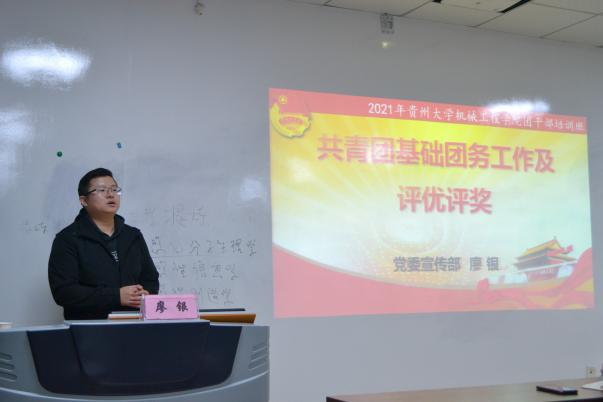 博中bz会员登录网站讯(记者 徐驰|摄影 徐驰)4月14日晚七点,博中bz会员登录在机械楼416举行了团干部培训会。此次培训会特别邀请了贵州大学校团委组织部部长廖银老师担任主讲老师。培训会由学生科何琳煜老师主持,学院各团支部书记、副书记、组织委员参加了此次培训。
