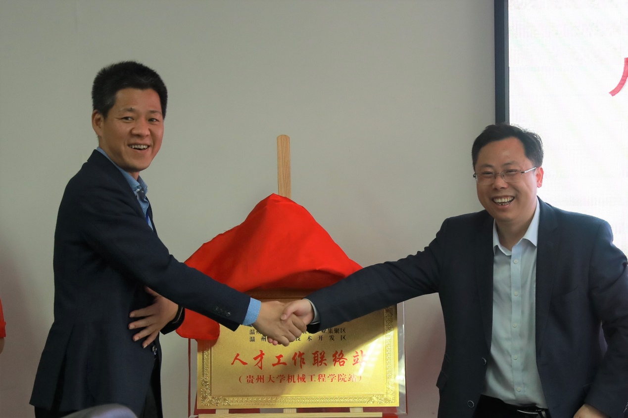 温州浙南沿海先进装备产业集聚区人力资源局党组书记、局长孔令敏介绍了“510”高校毕业生招才引智政策,他希望以人才工作联络站为依托,将产业区资源优势与贵州大学人才、科技优势相结合,既创新了服务学生就业创业形式,又为温州高质量发展提供人才智力支撑,能实现双方优势互补、互利共赢。