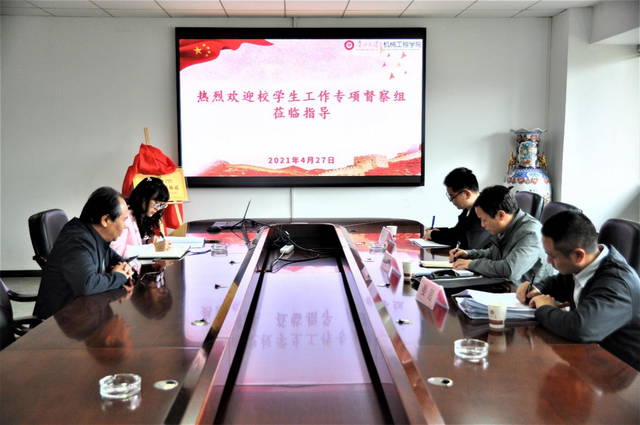 机械工程网站讯(记者 李晓成|摄影 邹醒佳)根据贵州大学《关于开展学生工作专项督查的通知》要求,贵州大学督查组于2021年4月27日到博中bz会员登录开展辅导员、班主任工作履职情况的专项督查。博中bz会员登录于中午1点在机械楼518举行了在校学生工作专项督查工作座谈会,组长由建筑与城市规划学院党委副书记赵家君担任,成员是建筑与城市规划学院学生科科长晏超和校学生处老师李成龙,博中bz会员登录党委书记安明刚、党委副书记廖烨、学生科辅导员、各年级班主任出席会议。