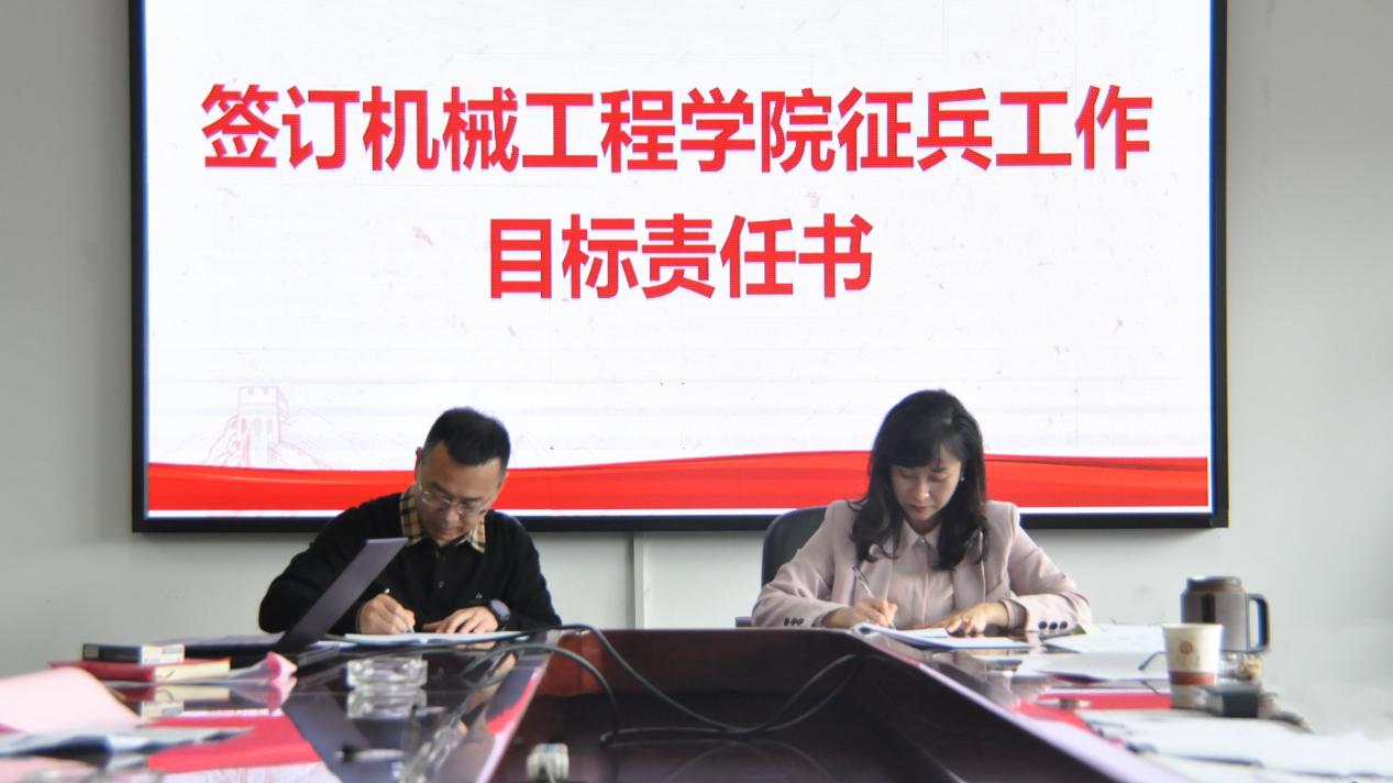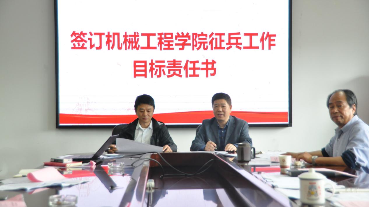 滕召华强调鼓励毕业生参军入伍的重要性,指出了现阶段学院征兵工作存在的问题,对下一步工作的开展提出了相关要求,随后相关系室主任与学院签订征兵工作目标责任书。