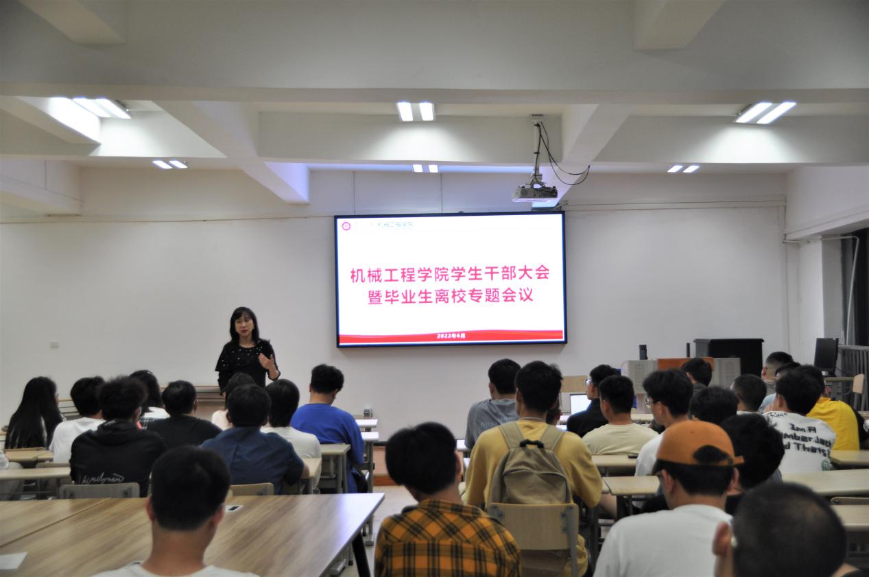 机械工程网站讯(记者 王楚刚|摄影 王楚刚)为做好毕业生文明离校各项工作,博中bz会员登录于2022年6月17日晚在机械楼327会议室召开研究生、本科生毕业班全体学生干部大会就毕业生文明离校等相关工作进行安排。博中bz会员登录党委副书记廖烨出席会议,学生科老师、毕业班班干、研究生会、学生会干部参加会议。