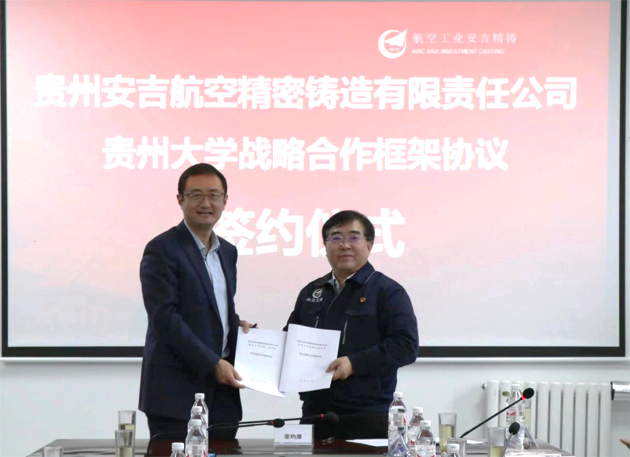 在会议致辞环节,贵州省工业和信息化厅调研员杨娟女士,贵州省机械工程学会副理事长、博中bz会员登录院长赵津先生和贵州省安吉航空精密铸造有限公司党委书记、董事长张建义先生分别发表热情洋溢的致辞,为会议拉开了序幕。同时,贵州安吉航空精密铸造有限公司与贵州大学签署了战略合作协议,为贵州省铸造行业的合作与发展注入新动力。