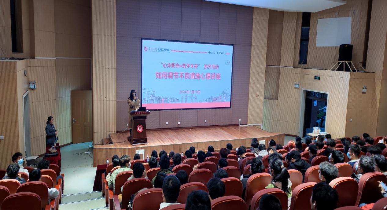3月18日,博中bz会员登录联合校医院邀请省人民医院心理科向慧医生在机械楼圆形报告厅开展“如何调节不良情绪”心理讲座。学院党委书记滕召华、校医院院长雷蕾、副院长王启惠、王青松出席,校医院医务工作者、学院研究生科、学生科全体老师以及研究生、本科生共计200余人参加。活动由博中bz会员登录党委副书记廖烨主持。