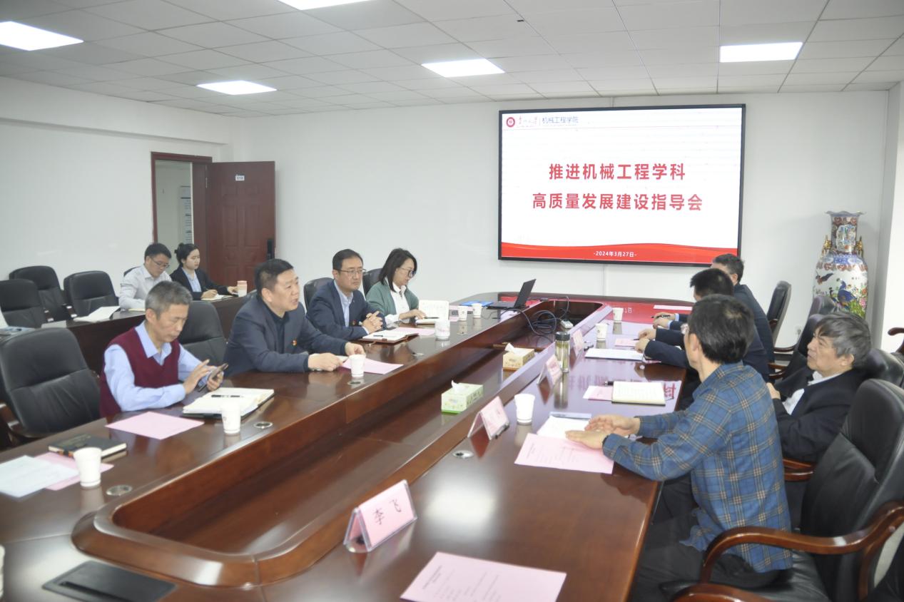 2024年3月27日上午,推进机械工程学科高质量发展建设指导会议在机械工程学院召开,中国工程院院士、校长宋宝安,贵州大学副校长陈祥盛、李飞,正厅级领导何林,以及学校党委组织部、人事处、研究生院、教务处、科学技术研究院等职能部门出席了会议。