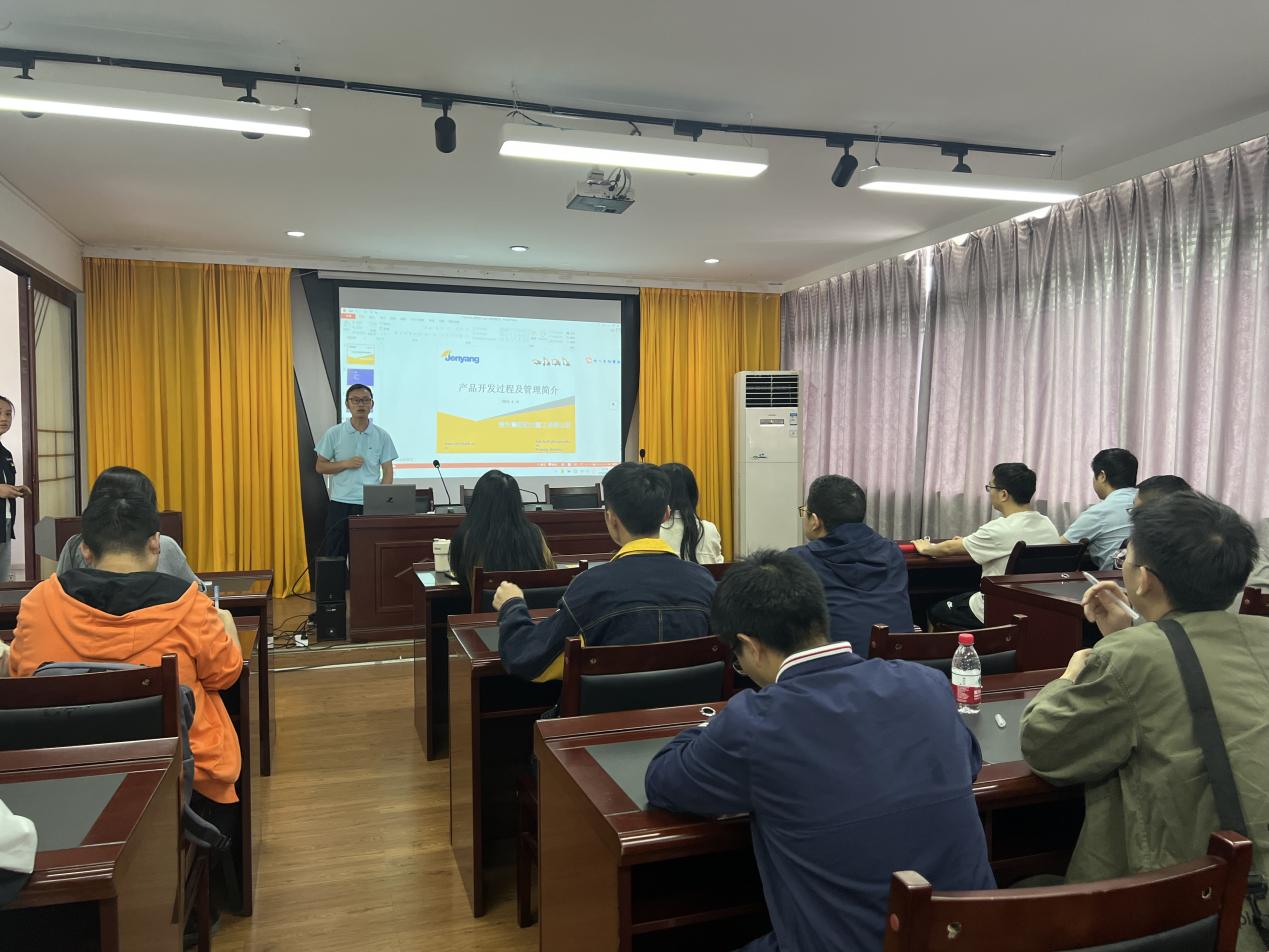 参观结束后,贵州詹阳动力重工有限公司高级工程师莫香亮为同学们授课,对贵州詹阳动力重工有限公司产品开发过程的各个阶段及管理模式进行了详细介绍。课后,同学们对授课内容积极提问,并表达了自己的见解。