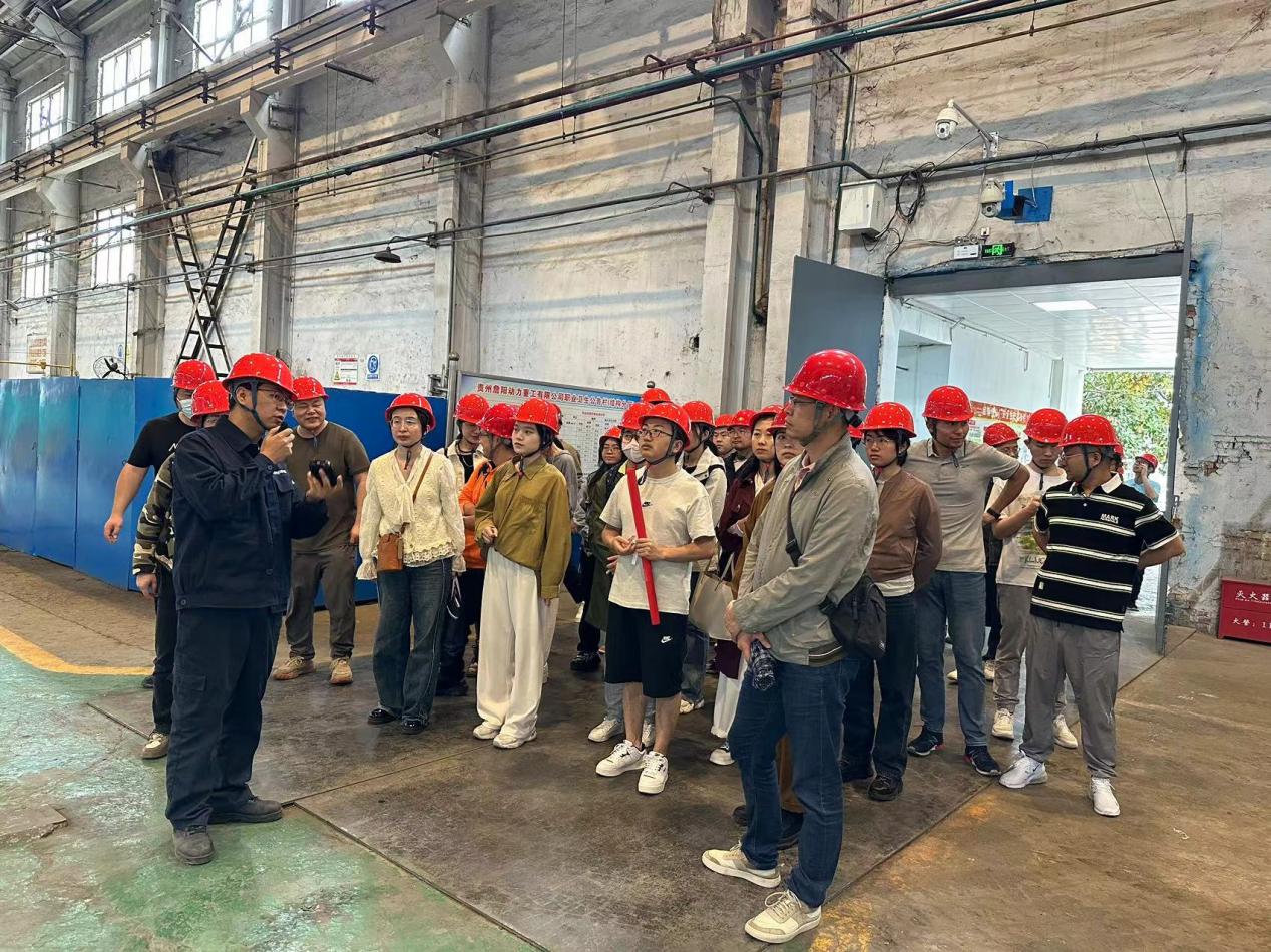 其次,贵州詹阳动力重工有限公司工程技术研究院高级工程师莫香亮、组织(人事)部蒋长林带领同学们参观公司装配分厂和结构件分厂。参观过程中,装配分厂讲解员邓国兴、结构件分厂讲解员夏峰分别对公司产品种类、零件制造过程、装配过程和产品管理模式等进行了相关的介绍,并对同学们提出的问题进行了细致的解答。