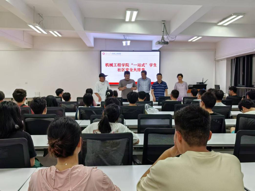在排查前,学院领导、消防科、消防站负责人在机械楼327对学生干部开展排查培训,强调学生干部要以高度的担当意识和警钟意识开展排查,重点排查是否存在违禁电器、是否私拉电线、是否存放有毒、易燃易爆、腐蚀性、放射性物品等存在安全隐患的物品等,强调要保持宿舍整洁卫生,并逐间宿舍张贴《宿舍安全注意事项》。