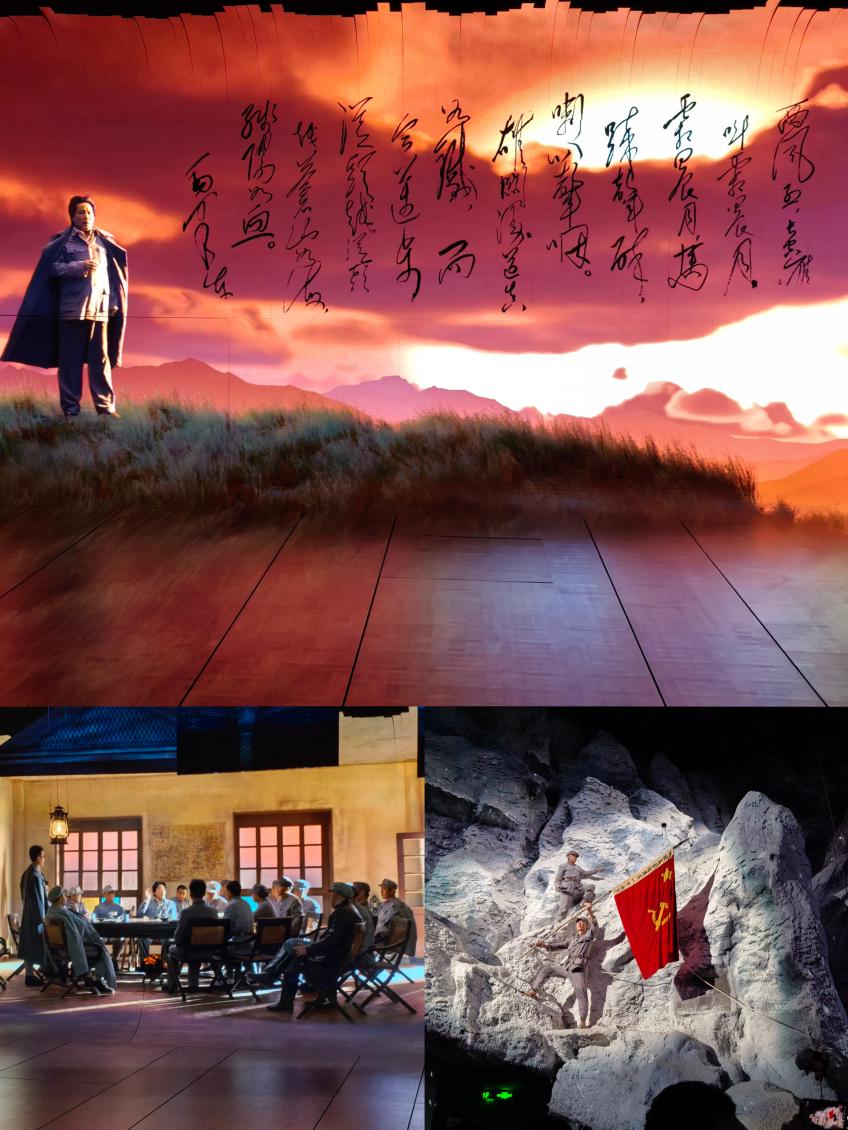 《红飘带·伟大征程》部分由无名英雄、血火洗礼、伟大转折、砥砺征途、胜利丰碑以及新时代新长征六个篇章构成,场馆通过领先的科技展演成果和艺术表现形式,结合行进式展演、剧场式观演等多种形态,让党员们沉浸式体验了长征途中“血战湘江”“遵义会议”“四渡赤水”“巧渡金沙江”“爬雪山过草地”等艰辛伟大的历史事件。大家感叹当下的中国科技之美的同时,也深刻认识到了红色政权来之不易、新中国来之不易、中国特色社会主义来之不易。